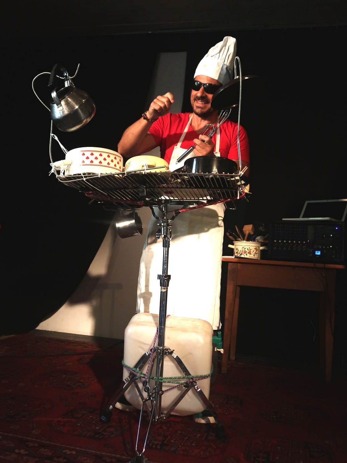 Unter dem Motto “Schlagzeug spielen ist ein Schicksal, keine Wahl” habe ich diese Show zusammengestellt, die sehr unterhaltsam ist und die Komplizenschaft, Koordination, das Lachen, die Kreativität und die Musikalität fördert, die wir alle in uns tragen.